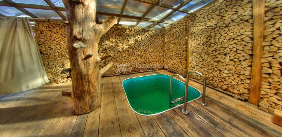 БАНЯ ПО-ЧЕРНОМУ большая, состоит из зала для отдыха, парной, душевой и купели на улице. Отличительная черта бани по-черному — отсутствие дымохода, дым при растопке выходит через маленькие окошки, обволакивая своим густым, насыщенным ароматом стены помещения. Сдается на 5 часов.